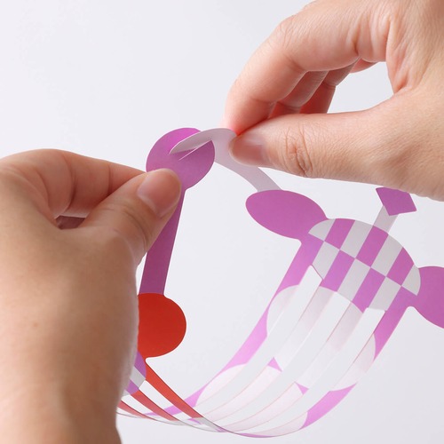 使い方:ペーパー人形同士の手の切込みを差し込んで連結させます。左右だけでなく上下や斜めに手を連結させることもできます。